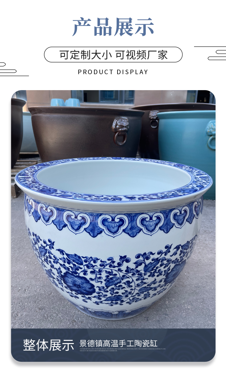 陶瓷大缸青花缠枝莲手绘乌龟缸锦鲤书画缸客厅庭院户外鱼缸