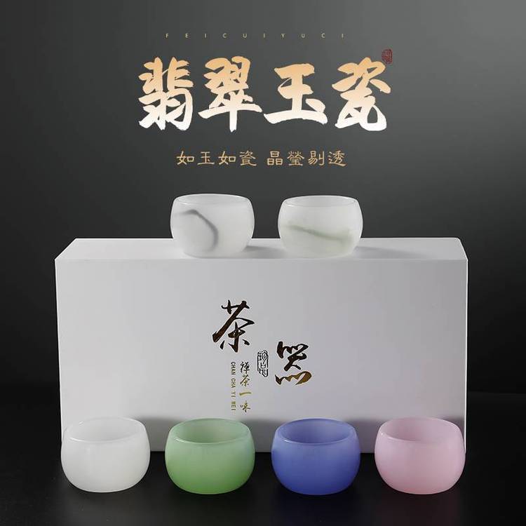 琉璃玉瓷六色茶杯主人杯 功夫茶具品茗杯6件套 琉璃玉瓷茶杯定制