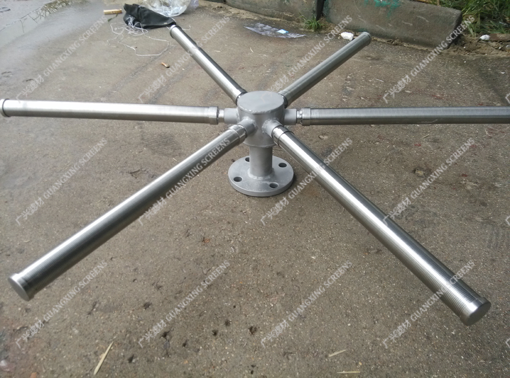 布水器主要由母管和数条绕丝支管组成,通过调整支管的大小,类型以及分布数量来实现优良的收集和分配过程。广兴滤材布水器可实现均匀,有效的分配和收集需要处理的液体或气体。