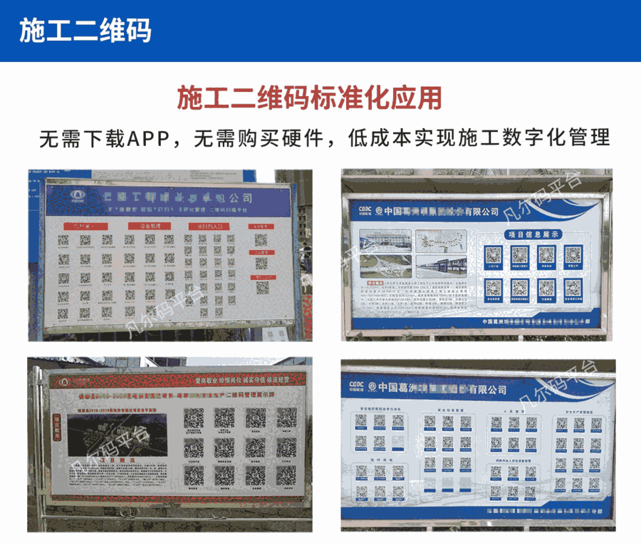 将项目概况、工地总平图宣传图片、视频以专项施工方案、安全技术交底、技术交底文件,在凡尔码端后台并生成二维码,并粘贴在施工场地,方便现场扫一扫就可以对整个项目的信息一目了然,加强工程的宣传及交底教育工作,将从前覆盖一整面墙的项目信息整合到一个小小的二维码中,实现是数字化、智能化的管理;