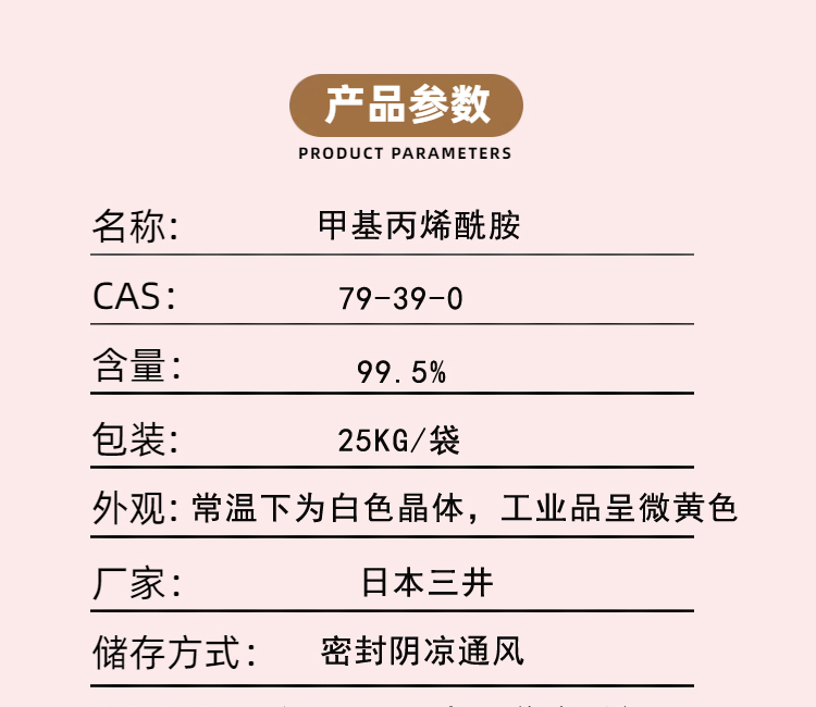 甲基丙烯酰胺(Methacrylamide),99.5%,25kg/袋,日本三井
