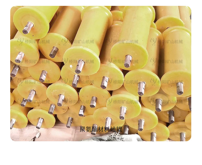 聚氨酯地辊具有以下特点:避免了因与钢丝绳之间摩擦而产生火花的问题,适用于煤尘等的场合使用。轮体转动部位采用双面油封的轴承,转动灵活,轮内注满温润滑脂,其使用周期较长。