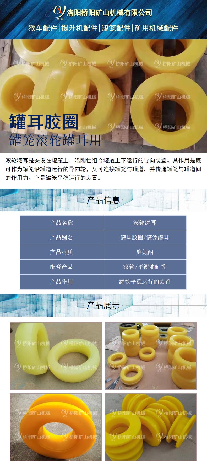 滚轮罐耳由单排轮或双排轮滚轮、缓冲装置和底架组成。