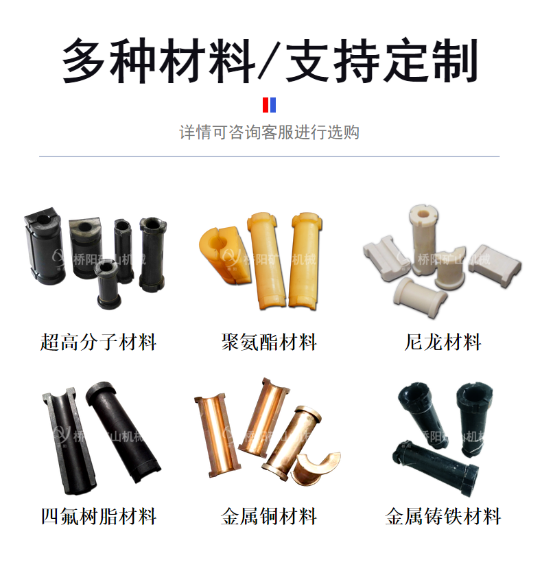 稳绳滑套又名罐笼滑套,钢丝绳导向套,按材料分主要有聚氨酯滑套、尼龙滑套、四氟树脂滑套、高分子滑套可替代铜件,金属铁滑套,各类不锈钢配件。