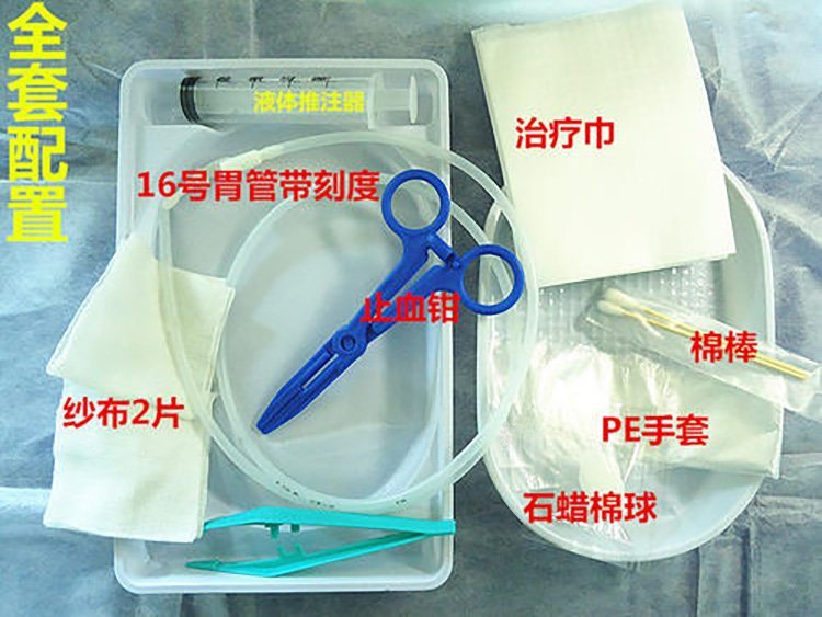 一次性使用鼻饲营养包由基本配置和选用配置组成;基本配置:一次性使用鼻饲管、医用脱脂纱布块;选用配置:医用棉签、医用棉球、医用石蜡棉球、医用酒精棉球、PE检查手套、一次性使用孔巾、一次性使用配药用注射器、一次性使用医用橡胶检查手套、一次性使用灭菌橡胶外科手套、一次性使用治疗巾、医用输液贴、一次性使用胃管、压舌板、医用镊、托盘、包布、围巾、小碗组成。