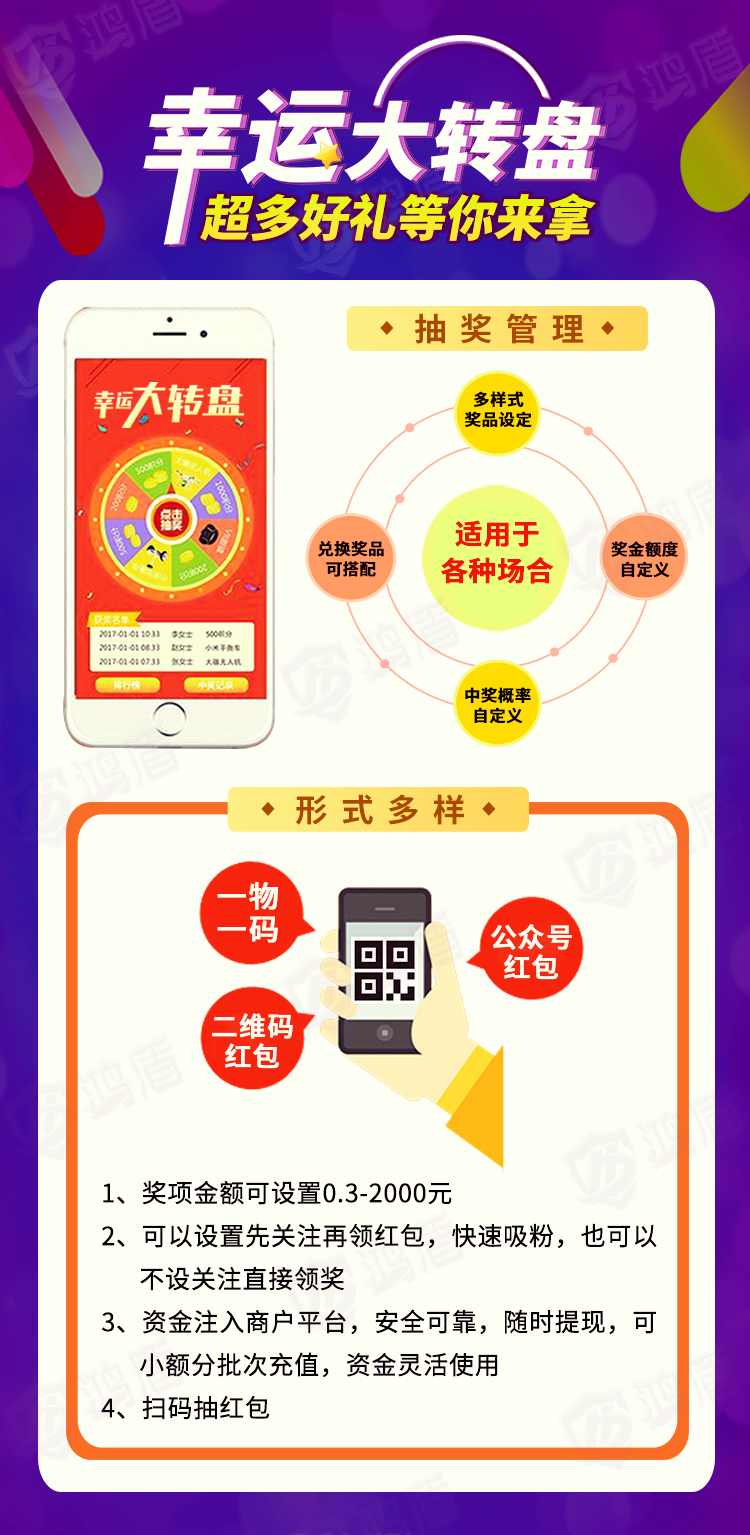 功能 | 防伪,溯源,红包营销,防窜货追溯,电子质保,其他定制功能 | ||