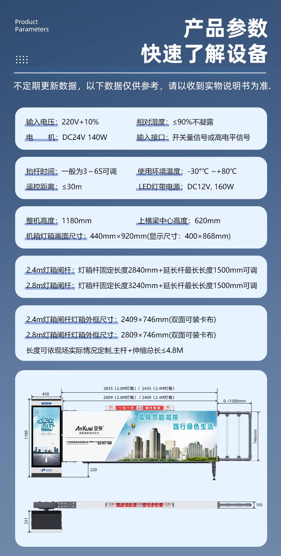 2.4m灯箱闸杆灯箱外框尺寸 | 2409×746mm | ||