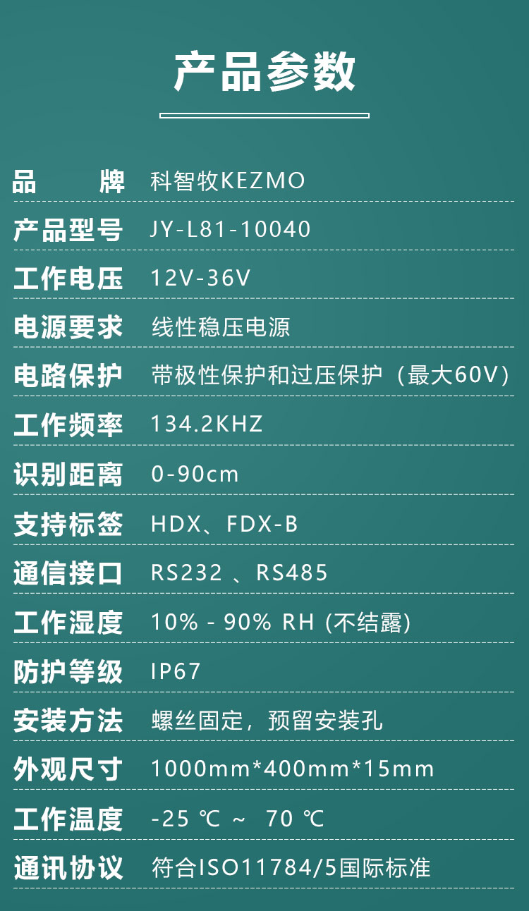 HDX/FDX电子耳标读卡器 RFID动物耳标阅读器 通道点数分栏称重管理 型号 | JY-L81-10040 | ||
