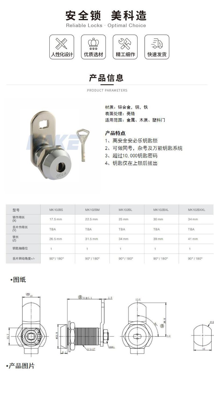 美科安必乐锁海浴场更衣柜锁健身房泳池寄存柜锁MK102系列