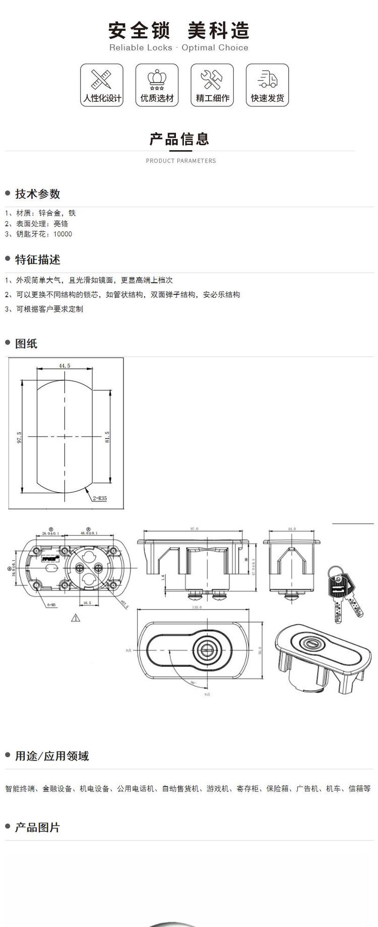 锁舌材质 | 不锈钢 | ||