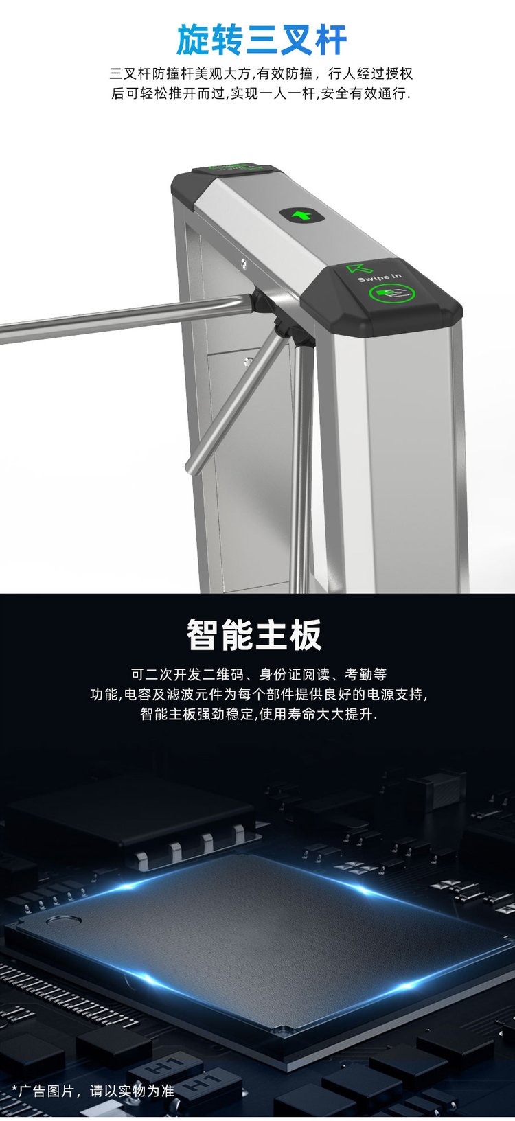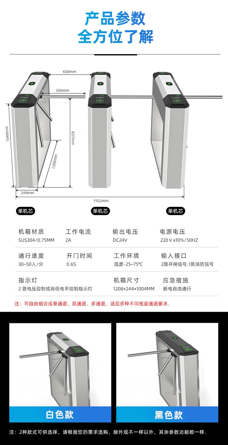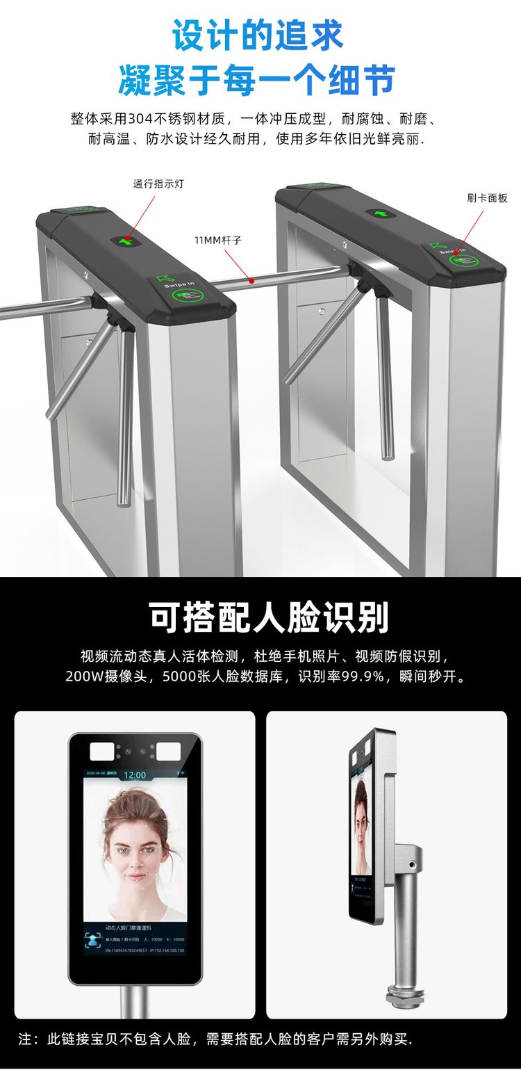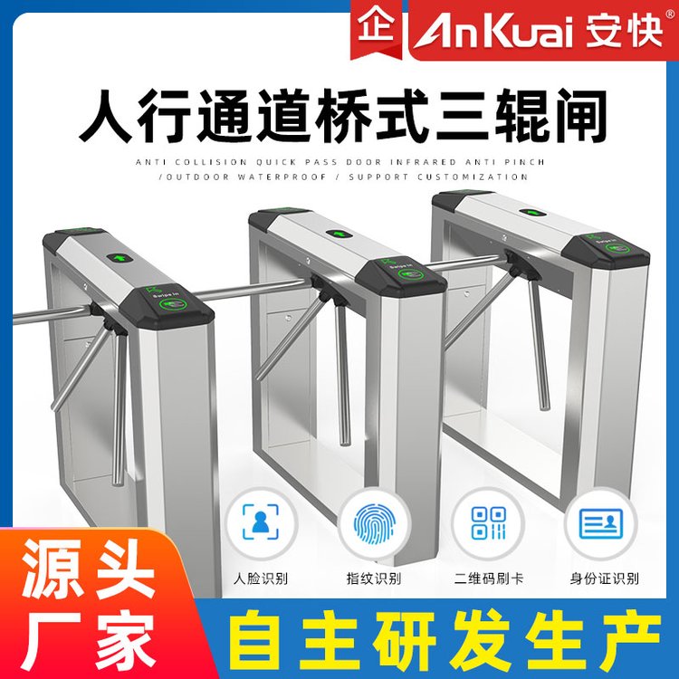 安快人行通道式三道闸可搭配人脸识别视频流动态真人活体检测