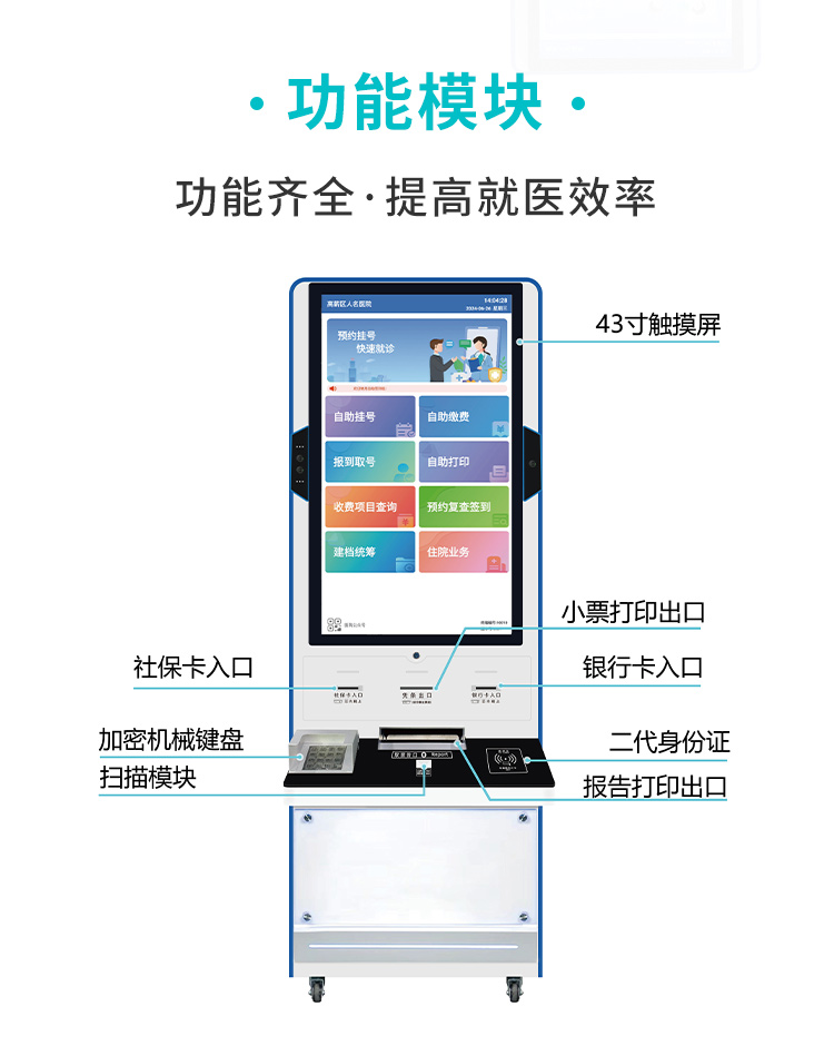 功能 | 自助挂号 取号 缴费 打印 | ||