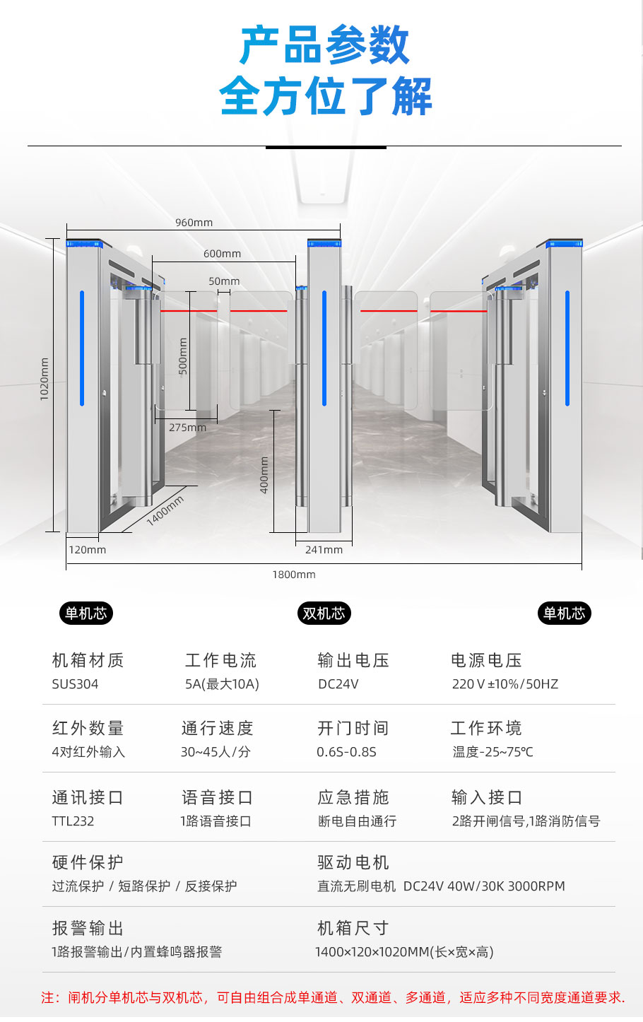 安快办公楼宇人脸识别速通门出入口智能门禁系统工地通道闸机
