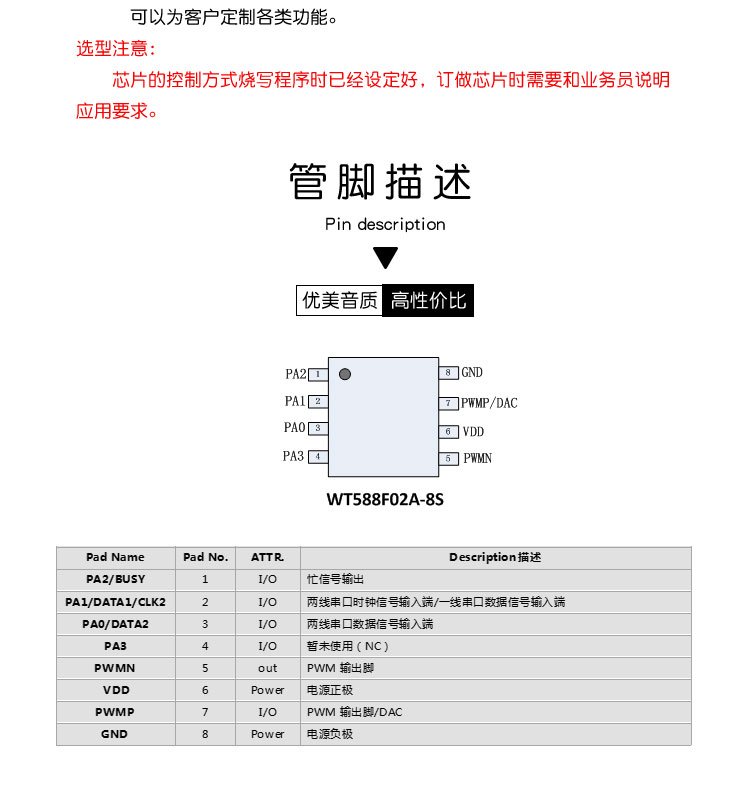 批号 | 内置存储语音芯片 | ||