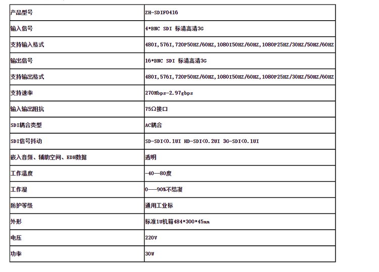 纵横天成4进16出SDI分配器支持标高清3G信号ZH-SDIF0416A