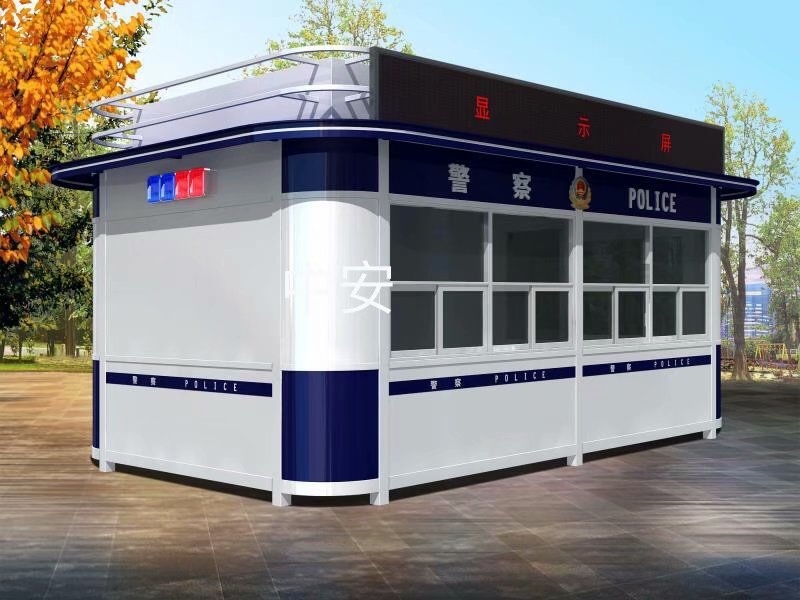 形式:分为小型岗亭和大型 岗亭。小型 面积一般2-8M2不等;大型 岗亭面积8-25M2不等。  岗亭为集装箱式岗亭。