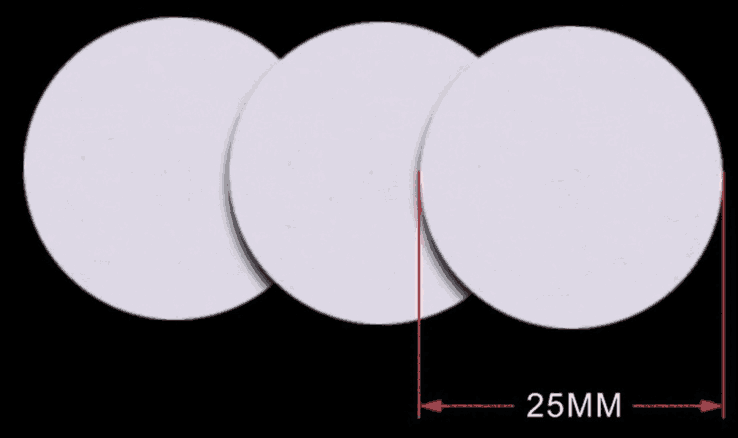PVC钱币卡现有一系列的尺寸可供选择:(直径13/15/18/20/23/25/30/35/40/45/50mm或者自定义)。