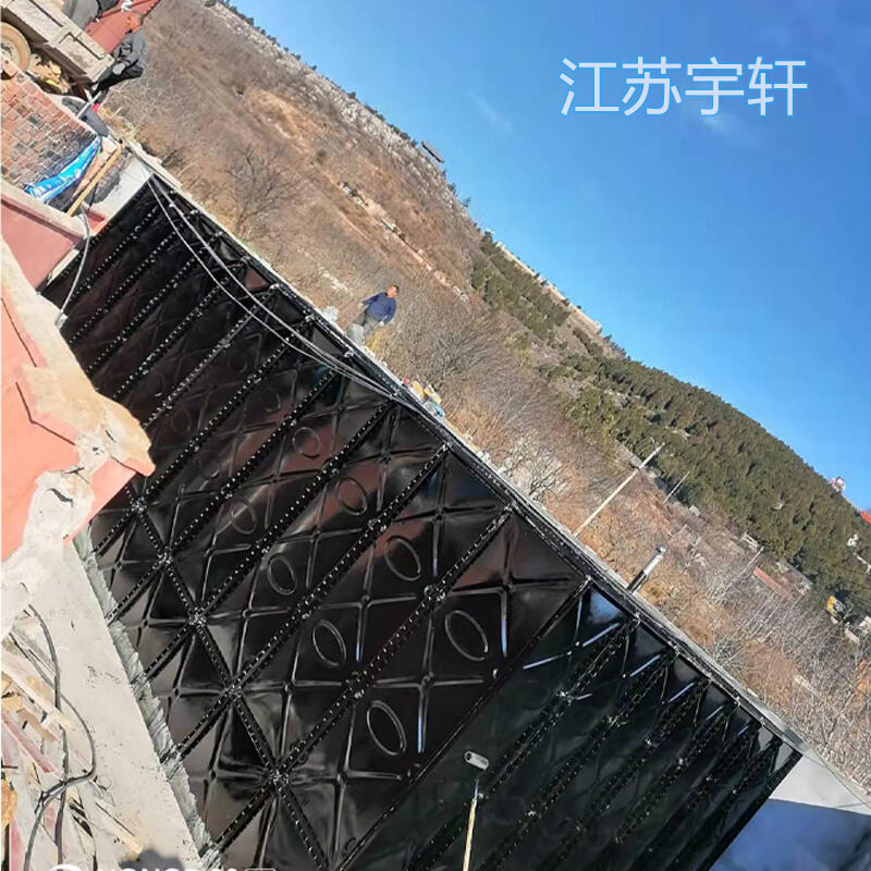 5.地埋式消防水箱的屋顶折叠成有棱角的形状,和踩木板相同的力度,清洗简单,不积水,外形美观。