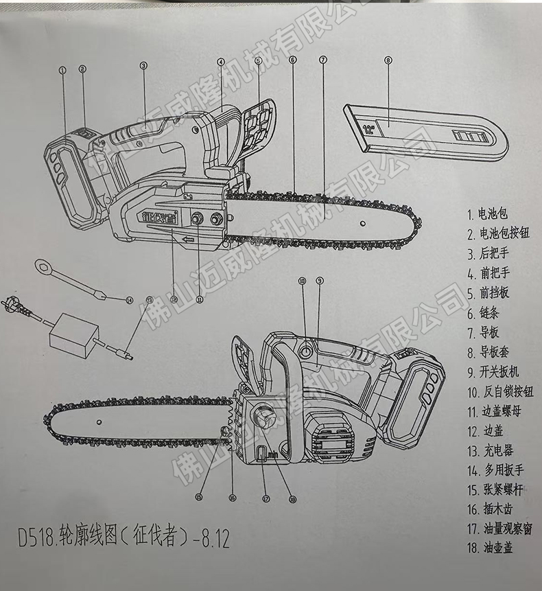 征伐者D518大功率砍树伐木锂电锯21V园林修枝灌丛修剪电锯