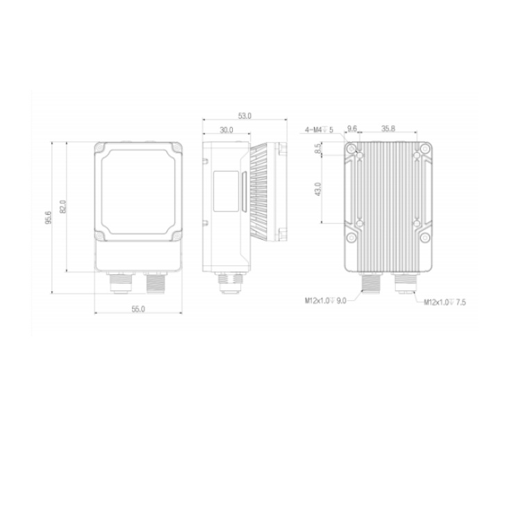 RE50G-16MWG1 华睿科技R5000系列500万像素16mm镜头全局快门45fps千兆工业以太网接口白光深度学习算法智能读码器 结构尺寸图(mm):