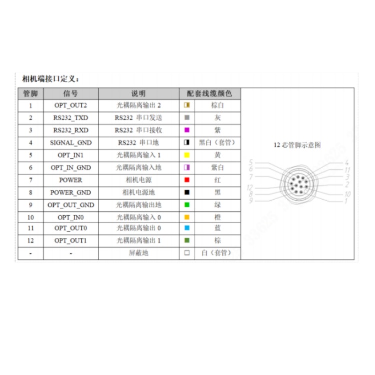 RE50G-16MWG1 华睿科技R5000系列500万像素16mm镜头全局快门45fps千兆工业以太网接口白光深度学习算法智能读码器 接口定义: