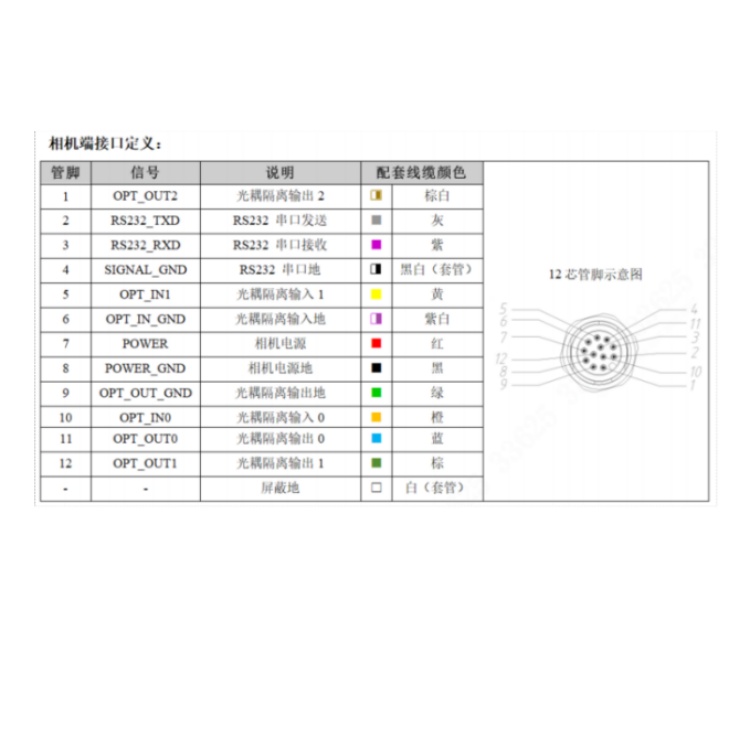 R5060MG-12M-WGG01 华睿科技R5000系列600万像素12mm镜头全局快门40fps千兆工业以太网接口深度学习算法白光智能读码器  接口定义: