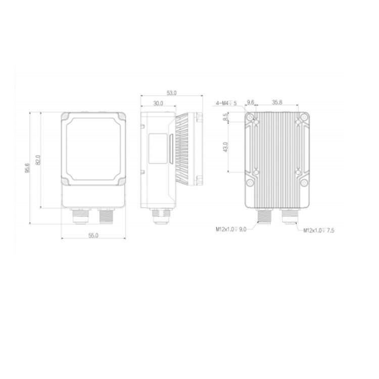 R5060MG-25M-WGG01 华睿科技R5000系列600万像素25mm镜头全局快门40fps千兆工业以太网接口深度学习算法白光智能读码器 结构尺寸图(mm):