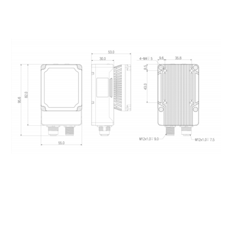 RE60G-12MRG1 华睿科技R5000系列600万像素12mm镜头40fps红光千兆工业以太网接口深度学习算法智能读码器 结构尺寸图(mm):