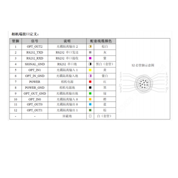 RE60G-12MWG1 华睿科技R5000系列600万像素12mm镜头40fps内置深度学习算法千兆工业以太网接口白光智能读码器 接口定义: