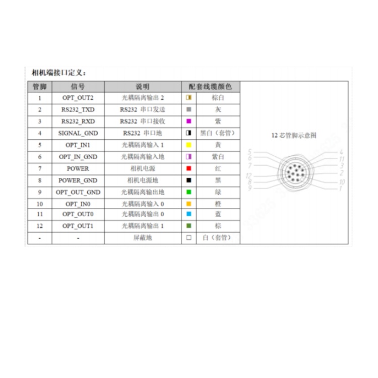 RE120G-00CNG1 华睿科技R5000系列1200万像素卷帘快门15fps内置自研AI算法千兆工业以太网接口黑白智能读码器接口定义: