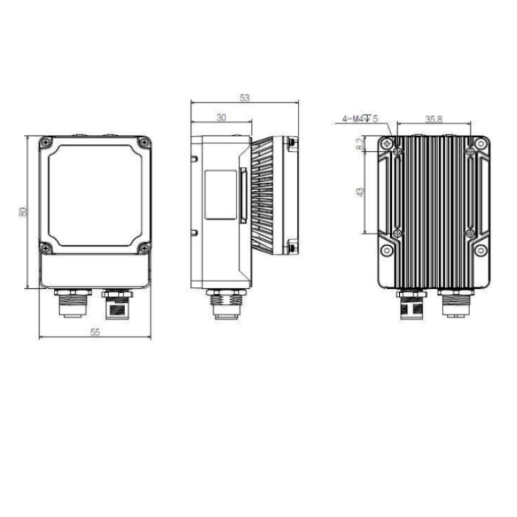 CR5000-LT06 华睿科技R5000系列400万像素帧率45fps电动对焦内置深度学习算法千兆工业以太网接口智能读码器 产品尺寸图: