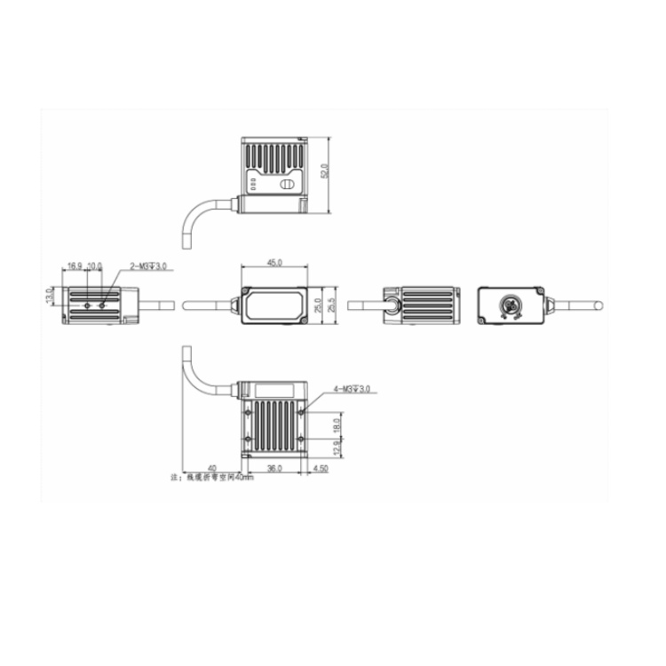 产品尺寸 45.0mm × 52.0mm × 25.5mm(不含线缆)