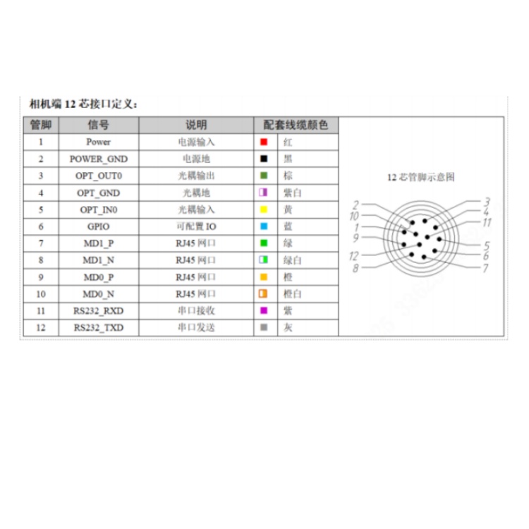 SS3016PCG-16H-WGN01 华睿科技SS3000系列155万像素16mm镜头全局快门60fps百兆工业以太网接口彩色白光智能相机 接口定义: