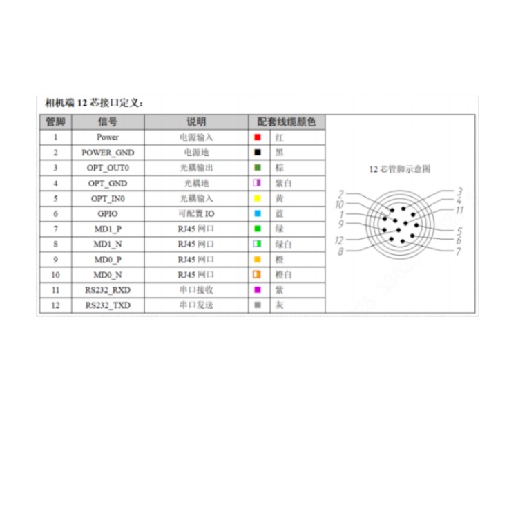 SS3016PCG-16H-WGF01 华睿科技SS3000系列155万像素16mm镜头全局快门60fps百兆工业以太网接口白光彩色智能相机 接口定义: