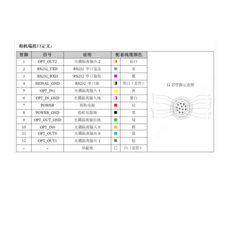 SS5016MG-16M-WGG01 华睿科技SS5000系列160万像素16mm镜头全局快门60fps内置丰富算法工具千兆工业以太网接口白光黑白智能相机 接口定义: