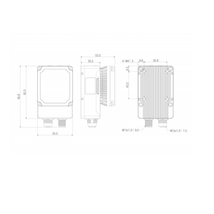 SS5016MG-25M-WGG01 华睿科技SS5000系列160万像素25mm镜头全局快门60fps内置丰富算法工具千兆工业以太网接口白光黑白智能相机 结构尺寸图(mm):