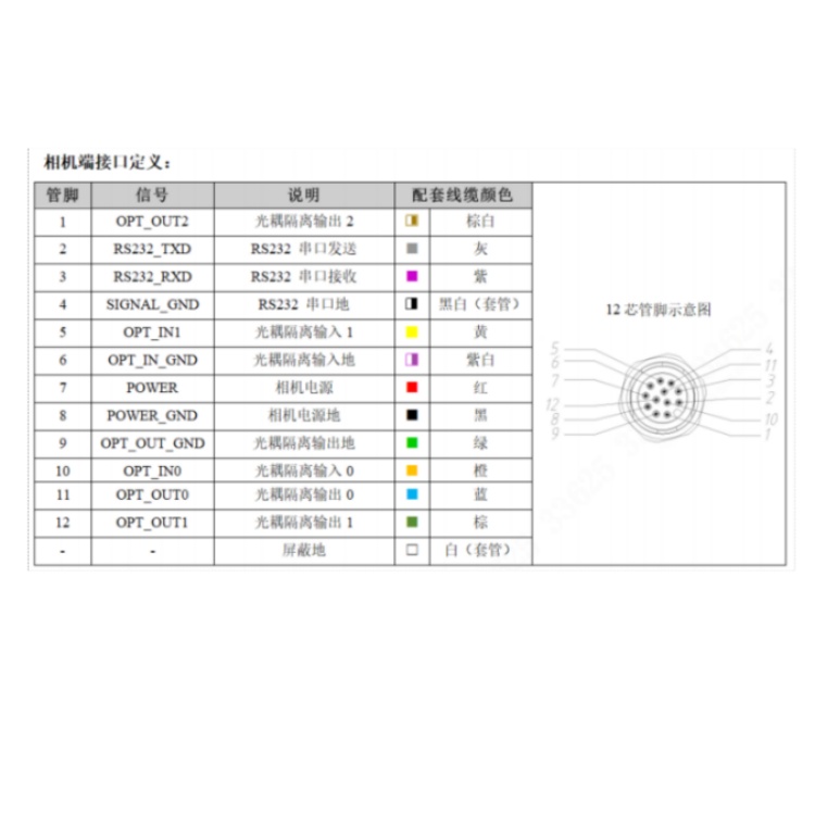 SS5016CG-25M-WGG01 华睿科技SS5000系列160万像素25mm镜头全局快门60fps内置丰富算法工具千兆工业以太网接口白光彩色智能相机 接口定义: