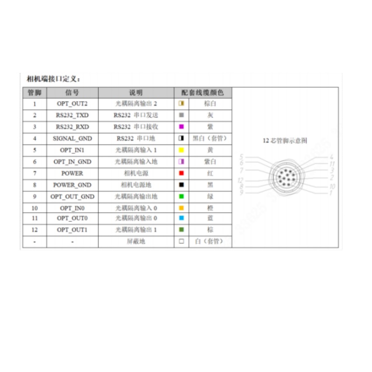 SS5050CG-25M-WGG01 华睿科技SS5000系列424万像素25mm镜头全局快门45fps内置丰富算法工具千兆工业以太网接口白光彩色智能相机 接口定义:
