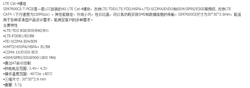 SIMCOM芯讯通A7600C1-CAT1低速4G通信模块支持上网