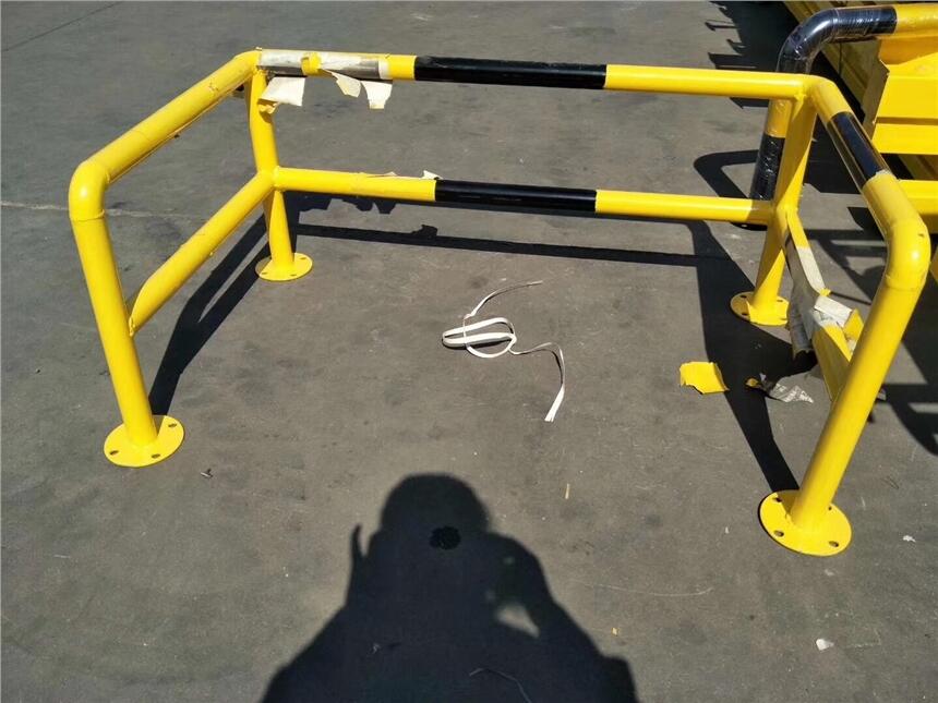 材质:优质钢管,黄黑相间,黑色喷塑防锈处理,黄色贴膜。每一端底部焊接125mm圆形法兰盘 法兰厚度10mm