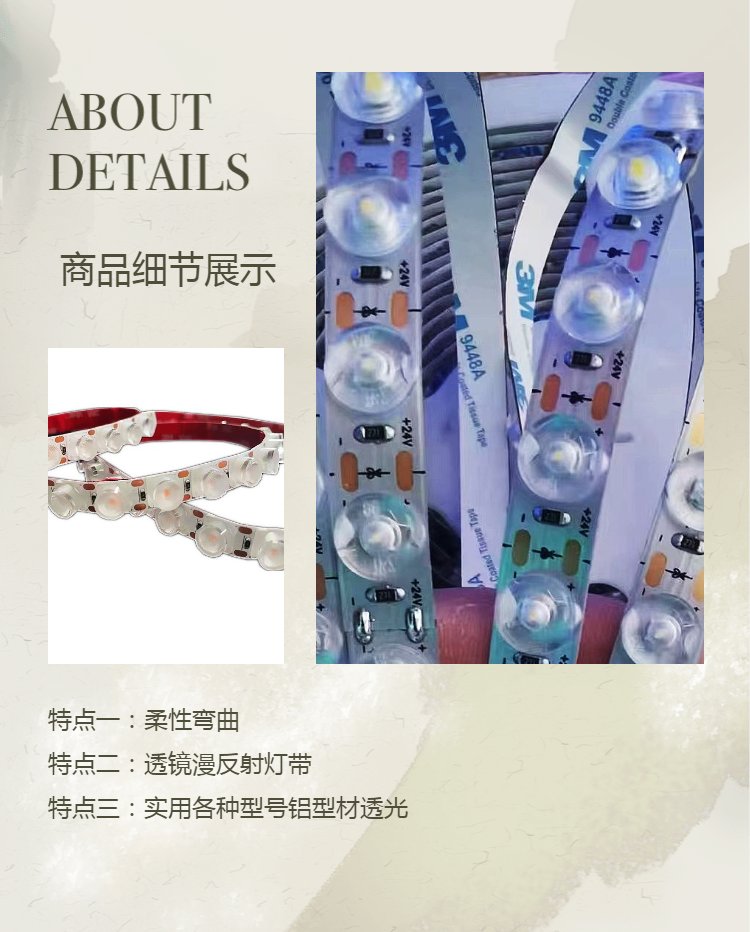 LED柔性漫反射灯带48珠透镜灯条宽铝材专用光源DC24V