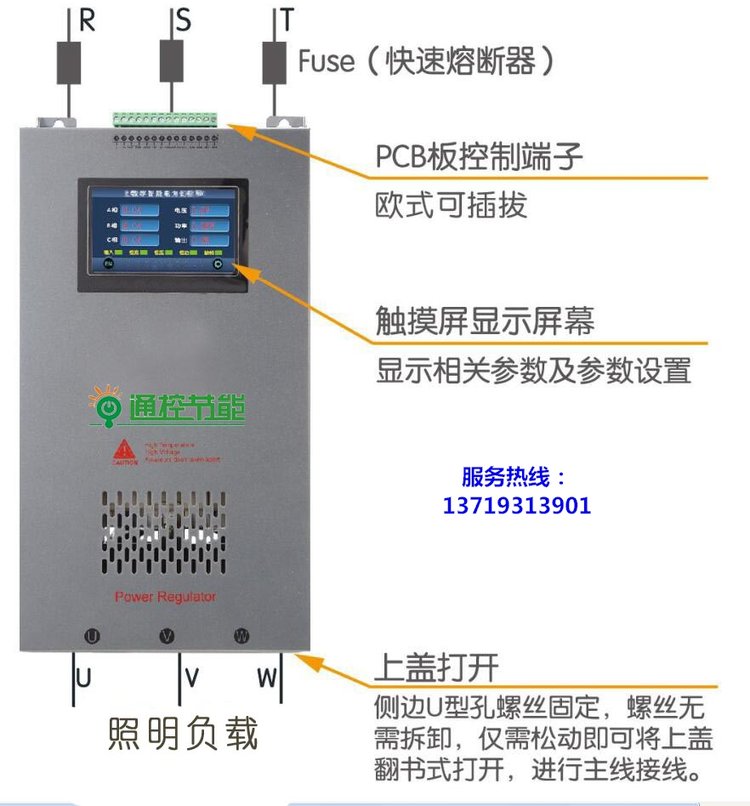 2、软启动/全压启动 :用户可根据灯具种类的不同选用软启动或全压启动,以保证灯具能正常启动,并延长其寿命,其启动时间可调。