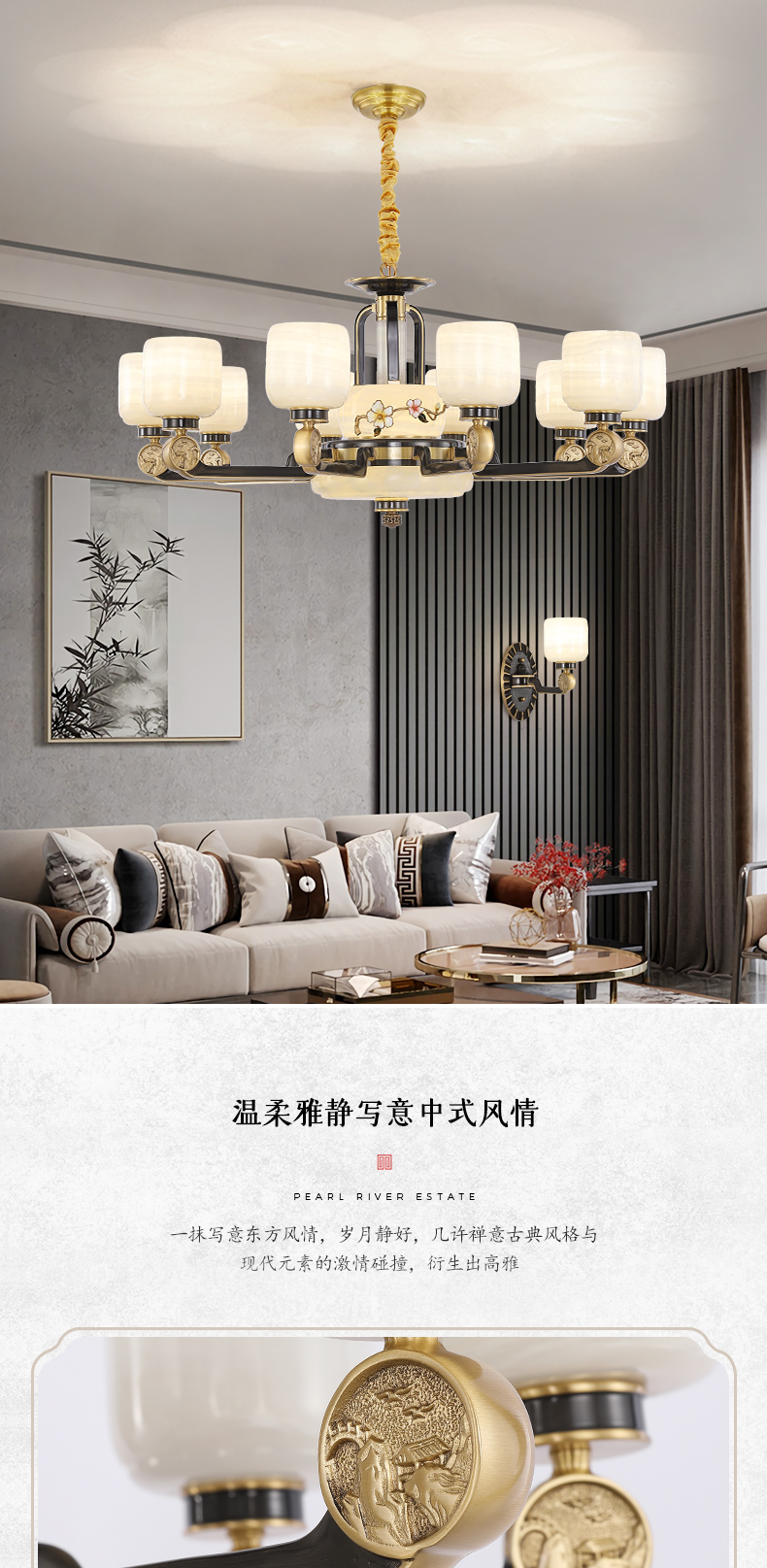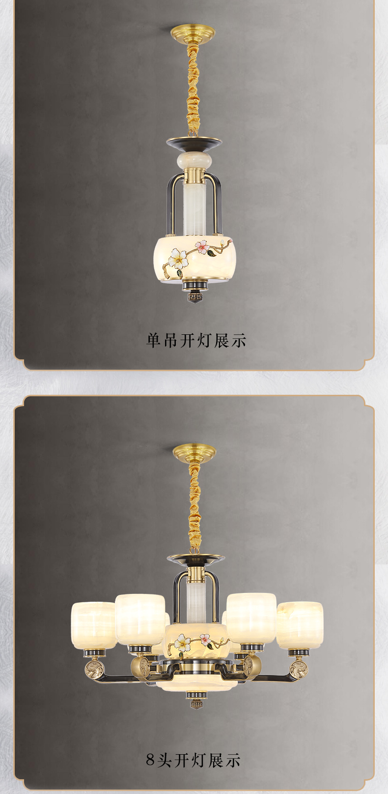灯具材质 | 全铜灯臂 白玉石灯罩 珐琅彩玉石中柱 玉石底锅 | ||