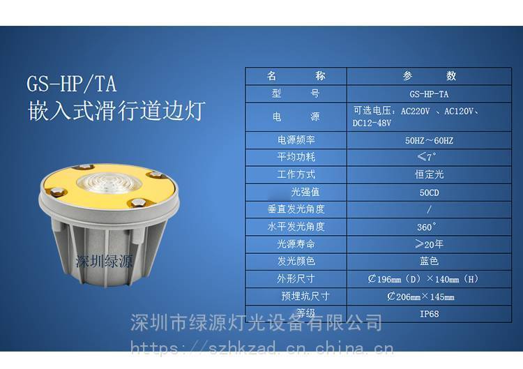 嵌入式滑行道边灯外壳采用铝合金重力铸造而成,具有的防水及散热性。内部采用LED光源结合的光学镜片设计,发光角度符合FAA标准。该产品可供直升机降落场,机场滑行道边界指示,能在夜间或能见度低的白天发出全向蓝光信号,明确标示出滑行道边线位置。