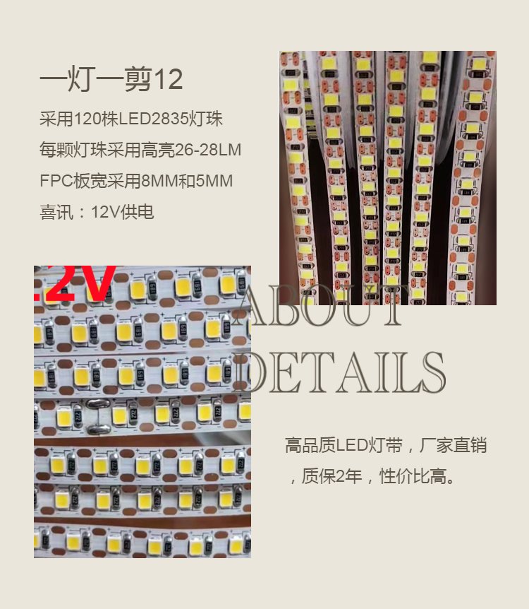 宇创光一灯一剪灯带12V120株橱衣柜灯带2835高显指铜支架任意剪切