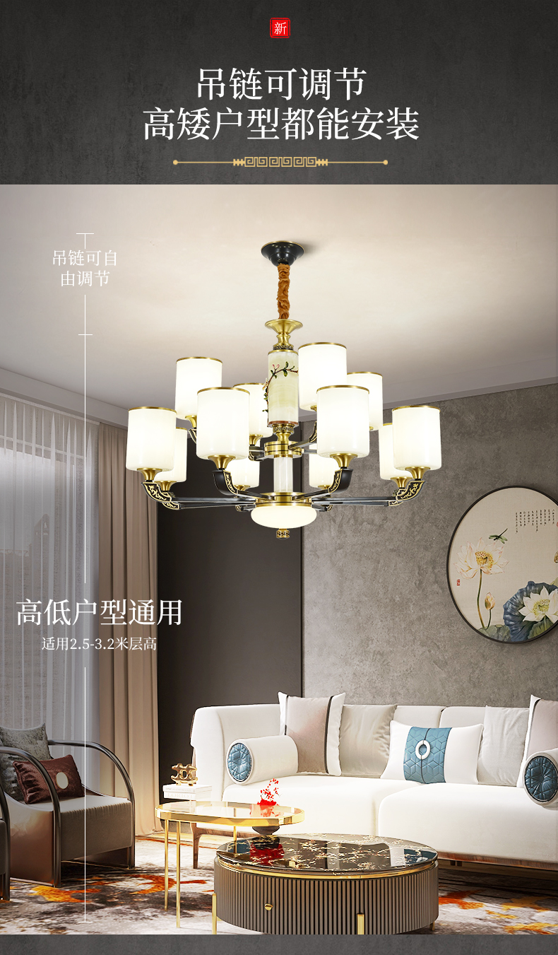 进丰全铜大厅灯别墅豪宅客厅吊灯定制新中式风格家居灯饰