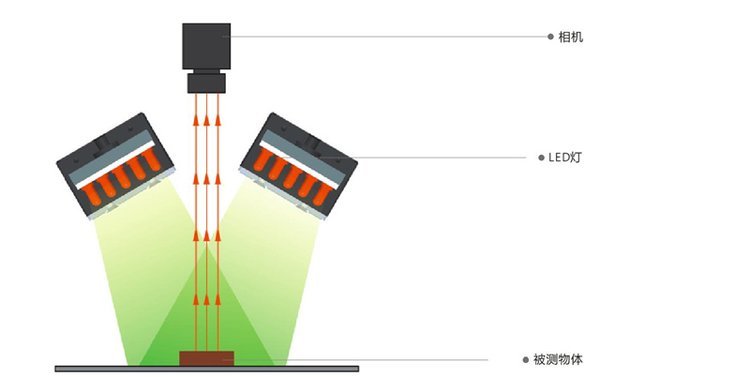 条形光源特别适用于大尺寸特征的成像场合,其长度从十几毫米到几米不等,并可根据实际需求选择光源颜色。多个条形光源可自由组合,照射角度也可根据检测需求随意调整。是机器视觉中应用最为广泛的光源之一。