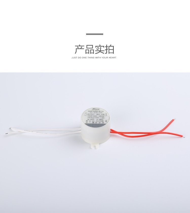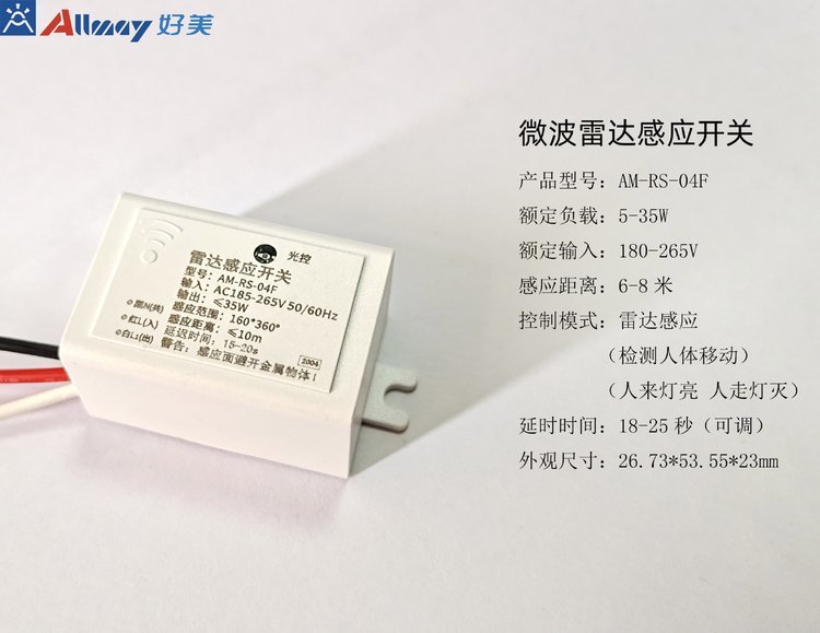 4.与红外产品比较:雷达开关感应距离更远,角度广,无死区,能穿透玻璃,和薄木板,根据功率不同,可以穿透不同厚度的墙壁,不受环境、温度、灰尘等影响,在37度情况下,感应距离不会缩短。