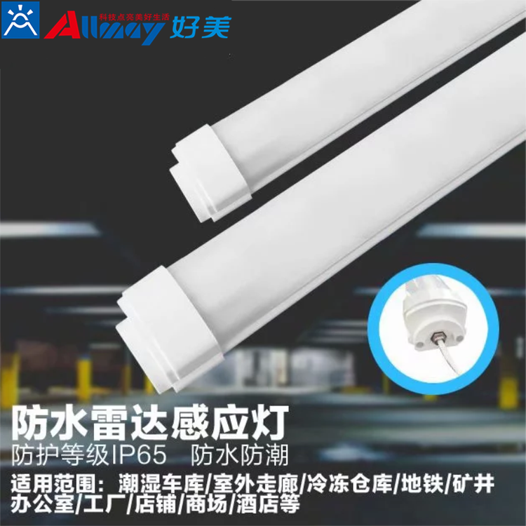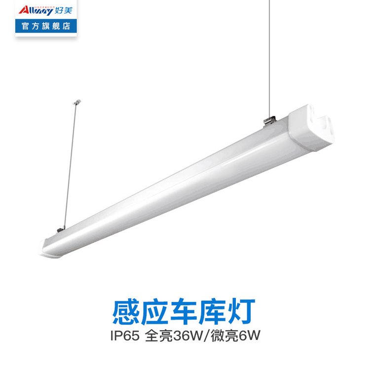 好美雷达感应车库灯地下车库三防灯人来全亮人走微亮吊线安装