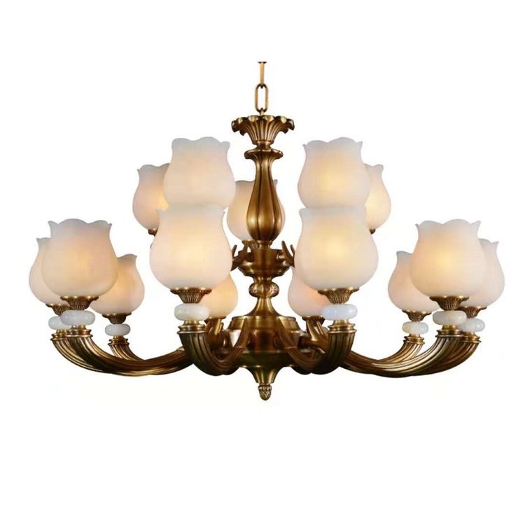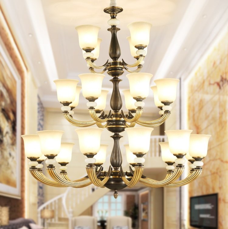 广东中山宝云全铜灯厂家 自建房别墅灯具定制全铜吊灯欧式纯铜灯具复式楼客厅吊灯
